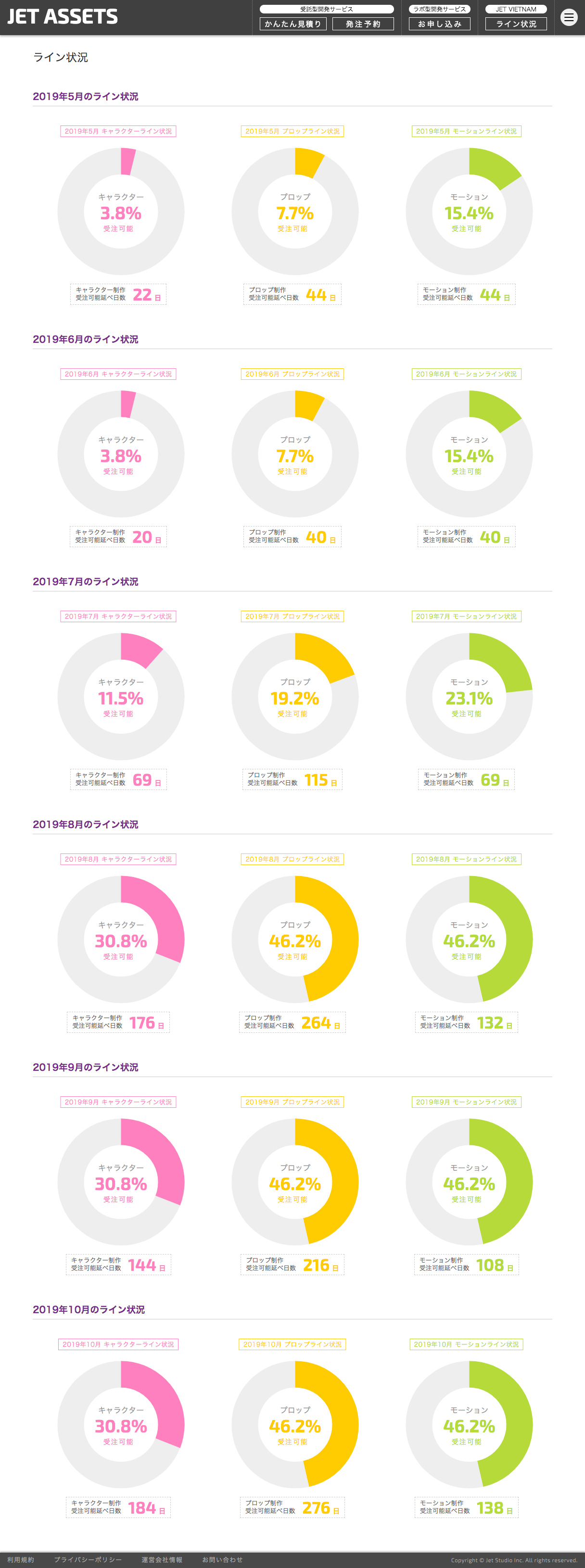 ジェットアセットでは、アセット制作ラインの稼働状況を半年先まで公開しています。制作スケジュールの策定にご利用ください。